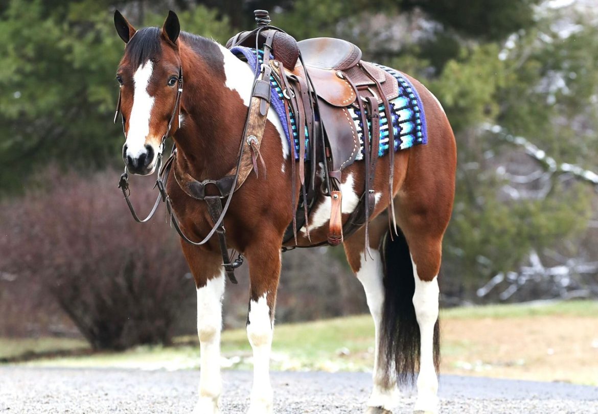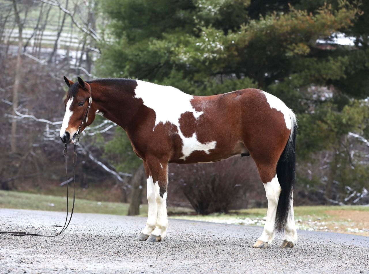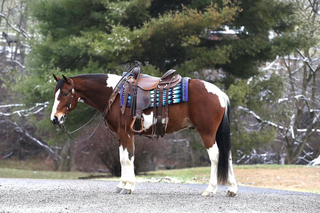 Prada is a dazzling 7-year-old brown and white Paint Draft cross gelding, standing a perfect 14.2 hands tall. With his bold, vividly painted coat and well-balanced, muscular frame, Prada is a showpiece of elegance and strength, turning every head and capturing every heart wherever he goes. His kind, intelligent eyes and gentle demeanor radiate a warm and inviting personality, making him as easy to love as he is beautiful to behold. Prada is not just about looks—his presence is magnetic, and his skillset is equally remarkable. Trained in Western, English, and bareback riding, he can even be ridden bridle less, highlighting his deep connection with his rider and his exceptional responsiveness. His smooth, flowing gaits are a delight for any rider, whether you are seeking a calm and steady trail horse or an arena partner for new challenges. A true professional on the trail, he crosses water, bridges, and other obstacles with confidence and ease. He is traffic-safe and desensitized to tarps, jugs, and other distractions, making him bombproof in virtually any situation. Not only does Prada ride beautifully, but he also drives just as well, making him an exceptional all-around partner for both riding and driving enthusiasts. This stunning gelding is beginner-friendly yet engaging enough for experienced riders. His calm, willing personality shines whether you are tackling trails, working in the arena, or hitching him up to a cart for a peaceful drive. Prada loads and unloads effortlessly, is up to date on all care, and is sound, steady, and ready for anything you dream of doing together. He is more than a horse—he is a partner, a confidant, and a friend who will leave an indelible mark on your heart. With his unparalleled beauty, unwavering temperament, and boundless potential, Prada is the kind of horse that comes along once in a lifetime.