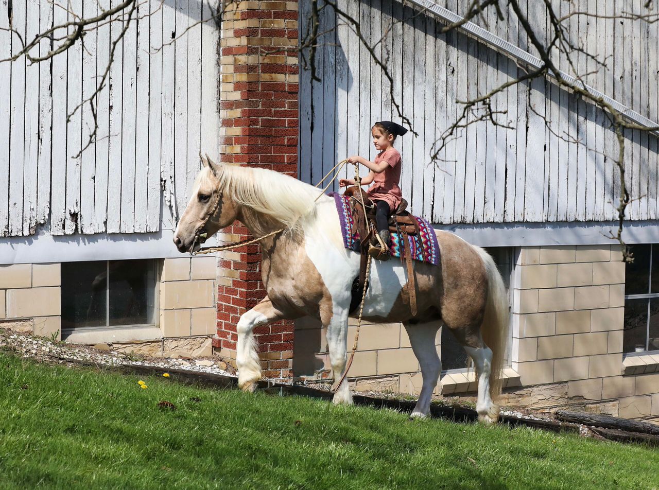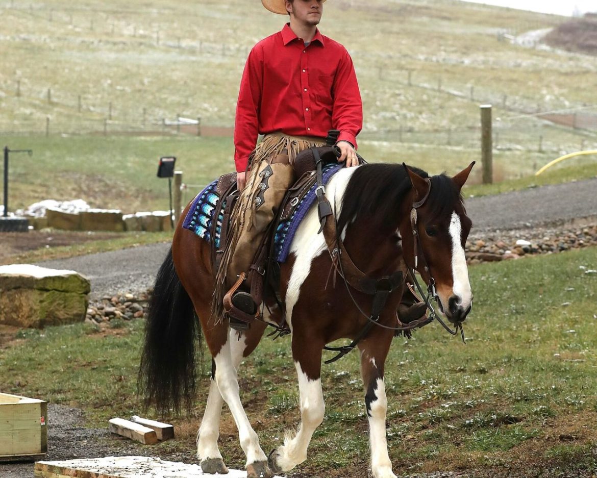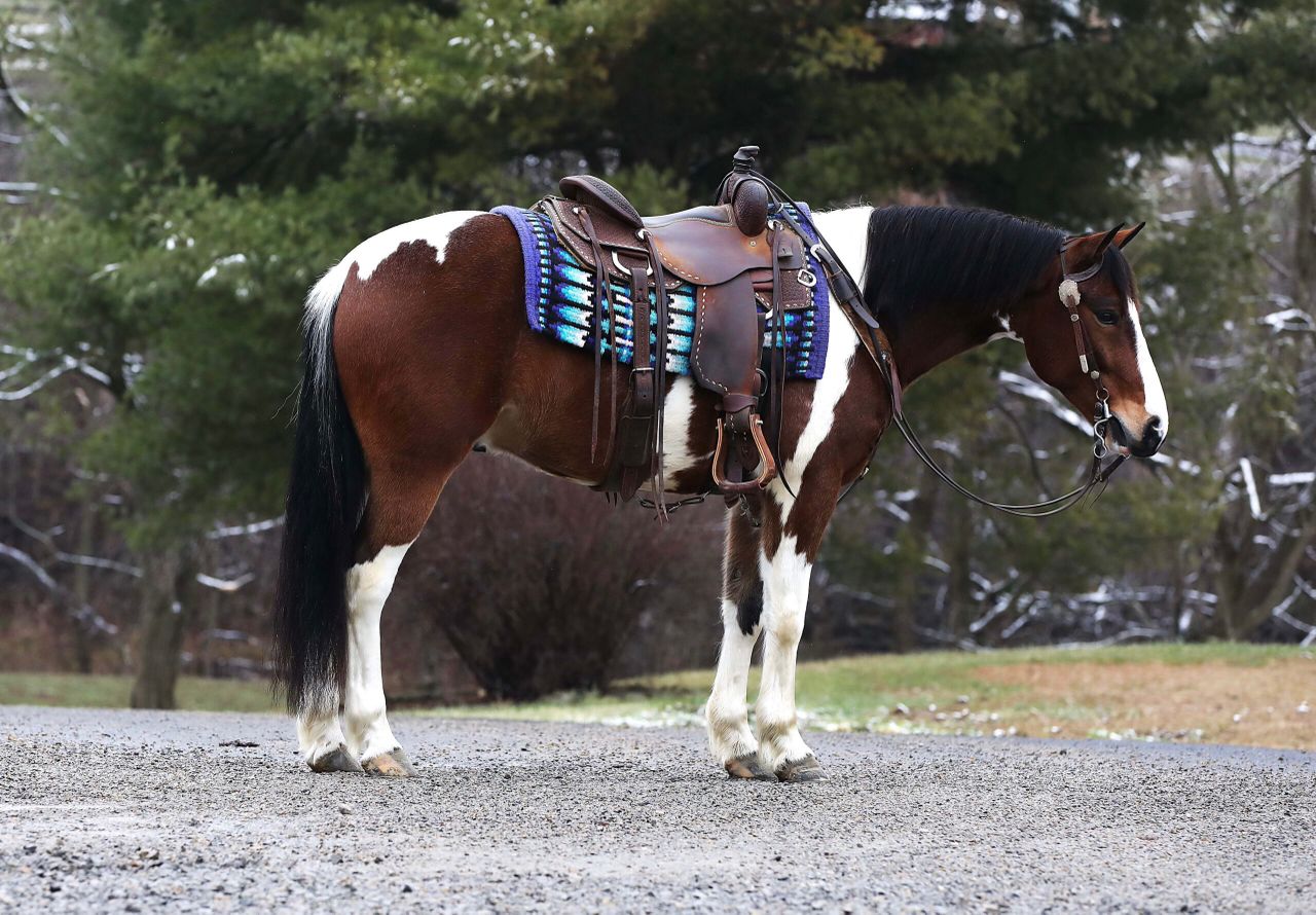 Prada is a dazzling 7-year-old brown and white Paint Draft cross gelding, standing a perfect 14.2 hands tall. With his bold, vividly painted coat and well-balanced, muscular frame, Prada is a showpiece of elegance and strength, turning every head and capturing every heart wherever he goes. His kind, intelligent eyes and gentle demeanor radiate a warm and inviting personality, making him as easy to love as he is beautiful to behold. Prada is not just about looks—his presence is magnetic, and his skillset is equally remarkable. Trained in Western, English, and bareback riding, he can even be ridden bridle less, highlighting his deep connection with his rider and his exceptional responsiveness. His smooth, flowing gaits are a delight for any rider, whether you are seeking a calm and steady trail horse or an arena partner for new challenges. A true professional on the trail, he crosses water, bridges, and other obstacles with confidence and ease. He is traffic-safe and desensitized to tarps, jugs, and other distractions, making him bombproof in virtually any situation. Not only does Prada ride beautifully, but he also drives just as well, making him an exceptional all-around partner for both riding and driving enthusiasts. This stunning gelding is beginner-friendly yet engaging enough for experienced riders. His calm, willing personality shines whether you are tackling trails, working in the arena, or hitching him up to a cart for a peaceful drive. Prada loads and unloads effortlessly, is up to date on all care, and is sound, steady, and ready for anything you dream of doing together. He is more than a horse—he is a partner, a confidant, and a friend who will leave an indelible mark on your heart. With his unparalleled beauty, unwavering temperament, and boundless potential, Prada is the kind of horse that comes along once in a lifetime.