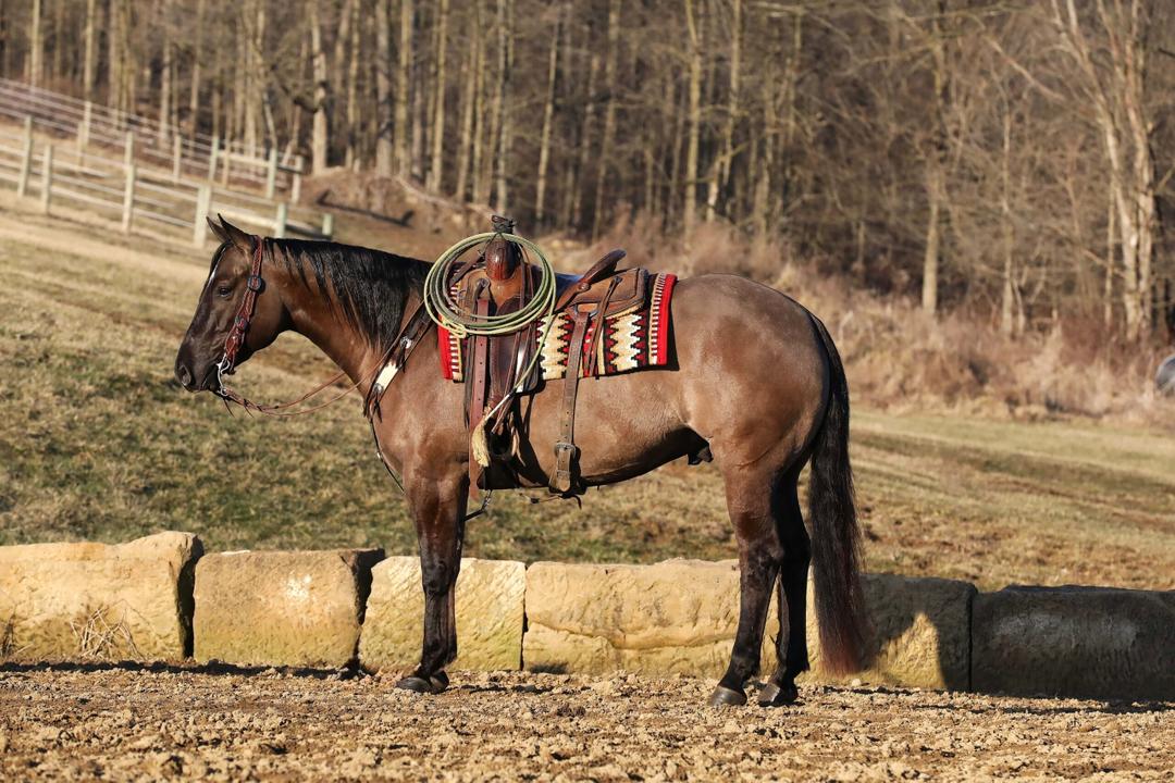 Weston is a 15-hand Grulla gelding with an exceptional demeanor and solid training to match his stunning looks. This 2019 model is safe, dependable, and well-rounded, making him an ideal partner for riders of all levels. Whether you are looking for a steady trail companion, a versatile all-around horse, or a confidence booster, Weston fits the bill. He has been on countless trail rides, traveled to new places, and always takes new experiences in stride. He is traffic-safe, has been ridden on state roads, and crosses water with ease. He handles rough terrain without hesitation and has been exposed to a variety of environments, from wooded trails to open fields. With a good one-hand neck rein and responsiveness to leg pressure, he is light in the bridle and easy to guide. He has a solid walk, trot, and canter, making him comfortable to ride whether you are out on the trail or in the arena. This gelding is not just broke—he is truly well-trained. He side-passes to the mounting block for easy on and off, making him ideal for riders who appreciate a considerate horse. He is soft in the mouth, moves off your seat and leg with ease. Weston is also desensitized to bull whips, gunshots, tarps, jugs, and all sorts of obstacles, proving repeatedly that he is level-headed and unshakeable. He is safe and fun for everyone, from beginners to advanced riders. He is forgiving enough to help a novice gain confidence while still offering enough responsiveness and training for an experienced rider to appreciate. He is the kind of horse you can let sit for a while and know he will ride off the same every time. One of Weston best qualities? His personality. He is the first to greet you when you walk into the barn, always eager for attention and ready for his next adventure. He enjoys being pampered, stands patiently for grooming and saddling, and has a kind, willing attitude that makes him a joy to be around. He currently wears shoes on all four feet due to the terrain where he is ridden, but he can go barefoot without issue. He loads, hauls, ties, and stands quietly for the farrier. If you are looking for a safe, trustworthy, and well-trained gelding with a heart of gold, Weston is the perfect fit.